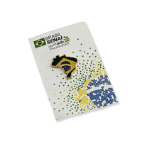39th WorldSkills Competition, Shizuoka 2007 – Brazil (SENAI) pin pin produced by Brazil (SENAI) for the 39th WorldSkills Competition, Shizuoka 2007. The pin is shaped as the map of Brazil and features the Brazilian flag rendered in enamel at its centre, framed in gold-tone metal. The pin is presented on its original backing card bearing the text “Brasil SENAI – WorldSkills Shizuoka 2007” and event branding. -