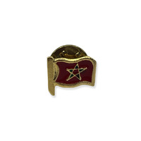 Morocco flag pin Metal pin badge depicting the national flag of Morocco, with a red background and a green five-pointed star at the center. The flag is shown in a waving form on a flagpole. -