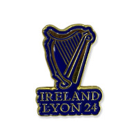 Ireland team pin, WorldSkills Lyon 2024 Gold-edged pin featuring the Irish national harp, with blue background and the inscription “Ireland Lyon 24.” Produced for the Irish team for promotion during WorldSkills Lyon 2024. -