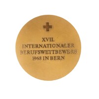 Commemorative medal, Bern 1968 A commemorative medal given to Francisco Albert Vidal in 1968 to honour his work as the IVTO Secretary-General, a position he held following the organization’s establishment in 1956 until 1983. The medal, featuring the Swiss cross, was made for the international skills competition held in Bern, Switzerland in 1968. -