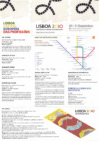 EuroSkills Lisboa 2010 event leaflet with mini map, programme highlights, and event information Folded leaflet for EuroSkills Lisboa 2010, presenting a mini map of the event site at FIL (Feira Internacional de Lisboa). The leaflet also includes quick facts about the event (31 countries, 52 skills in competition, 500 Competitors, etc.), the event schedule from 8–12 December 2010, and lists of institutional partners, sponsors, and organizers. -