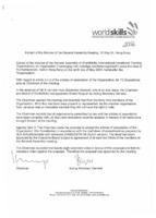 Extract of the minutes of the General Assembly, Melbourne, 10/05/2006 Extract of the minutes of the General Assembly of WorldSkills (International Vocational Training Organisation), held in Melbourne on 10 May 2006. The extract records that the GA reconfirmed and expanded upon the amendment of the Articles of Association originally approved on 10 May 2004 (Hong Kong). It approved additional amendments, including changing the organisation's name to "WorldSkills International" and integrating further revisions -