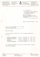Letter from Daniel Sommer to the Administrative Committee, Technical Committee, General Assembly, Auditors, and Standing Committee, 02/08/1984 (EN)                        Letter from Daniel Sommer to the Administrative Committee, Technical Committee, General Assembly, Auditors, and Standing Committee, 02/08/1984 Subject: Invitation to the meetings in Bern from 23–30 September 1984, including schedule of sessions for the Standing Committee, Technical Delegates, Auditors, and Official Delegates; information on venue, accommodation at Hotel Ambassador, transport, expenses, and program for accompanying persons. Request to return the registration form by 16 August 1984 and indicate approximate numbers of participants for Osaka. Mentioned enclosures (registration form, agenda, brochure, train schedule) are not included in the document. -