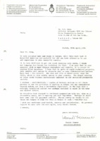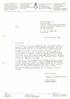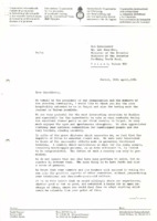 Letter from Daniel Sommer to Mr. S.C. Wang (Official Delegate IVTC for Taiwan), 26/04/1984 (DE) Letter from Daniel Sommer to Mr. S.C. Wang (Official Delegate IVTC for Taiwan), 26/04/1984 Subject: appreciation for the hospitality and cultural experiences during the Standing Commission meeting in Taipei, with hopes for continued cooperation and friendship; mentions enclosed confidential copies of letters to others met during the visit, not included in the document. -