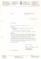 Letter from Daniel Sommer to Francisco Albert, 09/01/1984 Letter from Daniel Sommer to Francisco Albert, 09/01/1984 Subject: Reference to agenda for the upcoming Permanent Committee meeting in Taipei (7–9 April); proposes travel together from Amsterdam and will follow up once tickets are available -