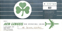 Passenger ticket and baggage check, Aer Lingus, 1962 Aer Lingus passenger ticket and baggage check issued in Dublin, Ireland, for Donal Cooper, for a flight Dublin–London–Dublin. -