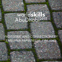 Pâtisserie and Confectionery - Emeliina Papinniemi Brochure from Skills Finland about Emeliina Papinniemi, gold medal winner in Patisserie and Confectionery at WorldSkills Abu Dhabi 2017. The brochure details how she made the confection, its recipe, and photographs of Emeliina. -