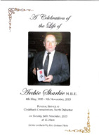 Funeral card of the Archie Sharkie's funeral Funeral card of the Archie Sharkie's funeral service, 24/11/2015 -