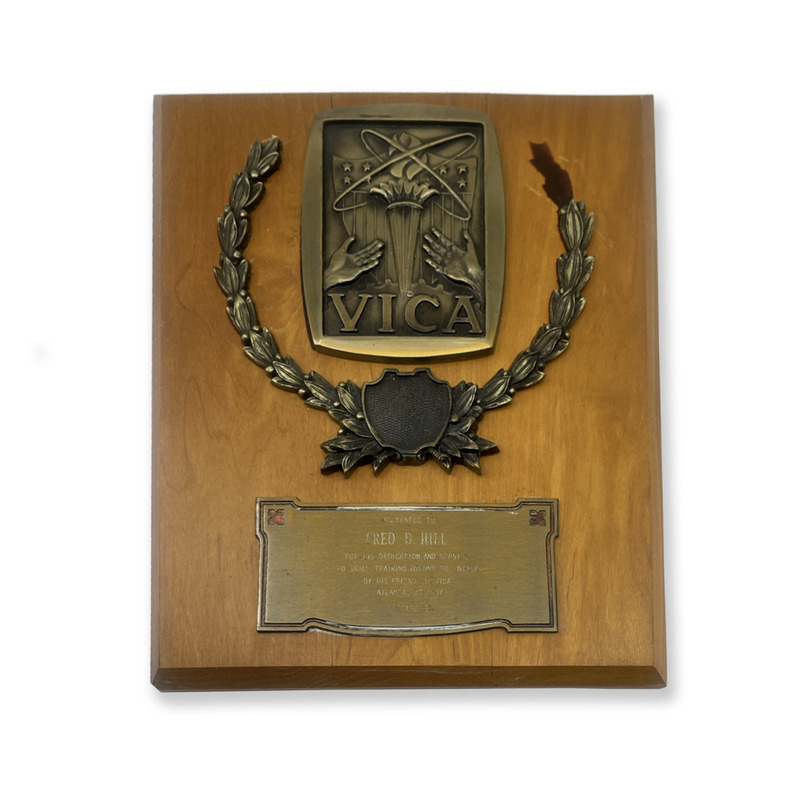 - A plaque presented to Fred Hill by VICA (Vocational Industrial Clubs of America), in Atlanta, Georgia in June 1981.