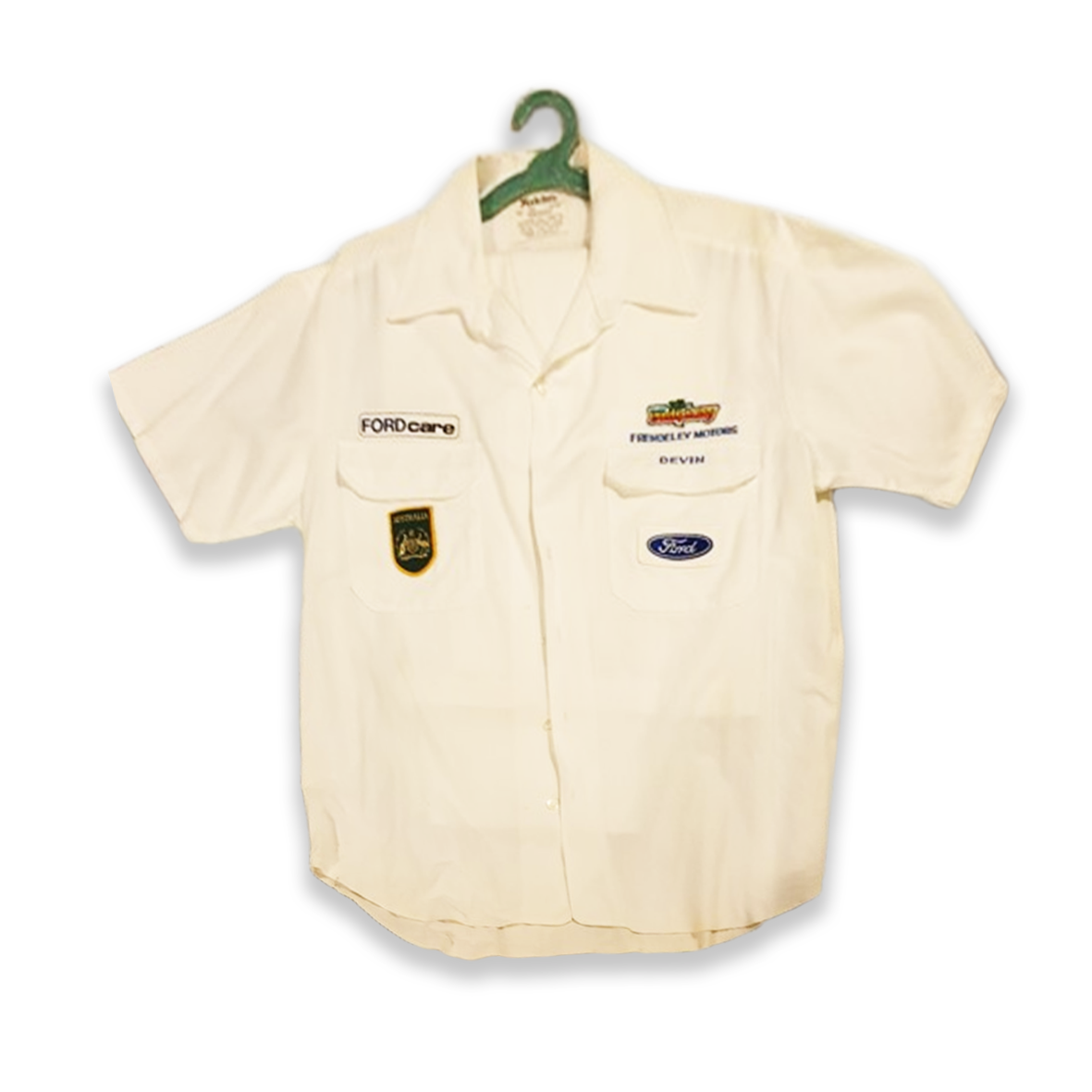- Automotive Mechanic Australian competitor shirt worn by Devin Flor, Gold medal winner for Automotive Mechanics in Sydney 1988.