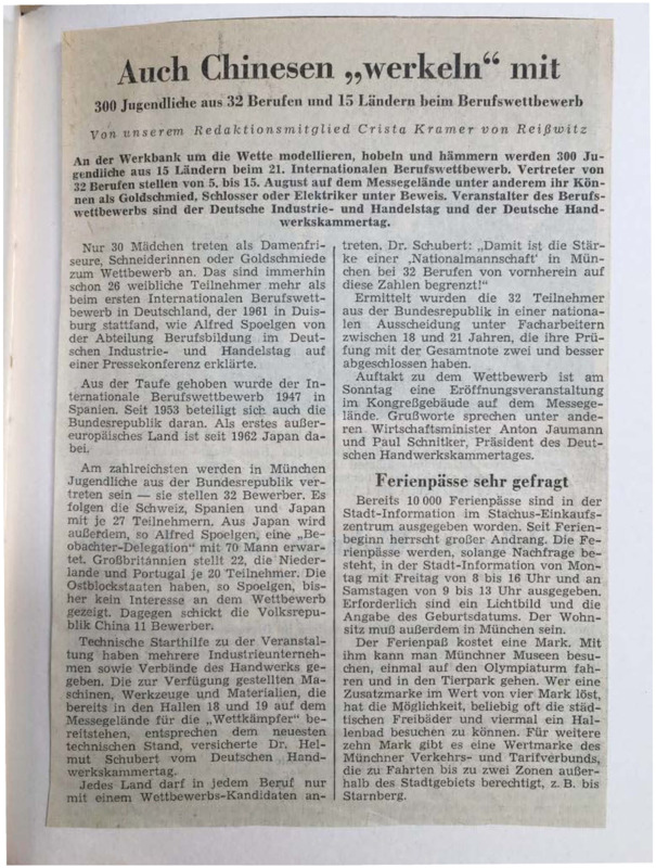 - Review on the 21st International Apprentice Compeittion, Munich 1973, by Crista Kramer
