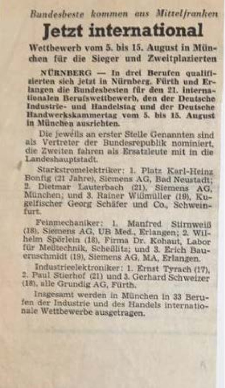 - Review on the succes of Competitors from Franconia at the national Competition 1973