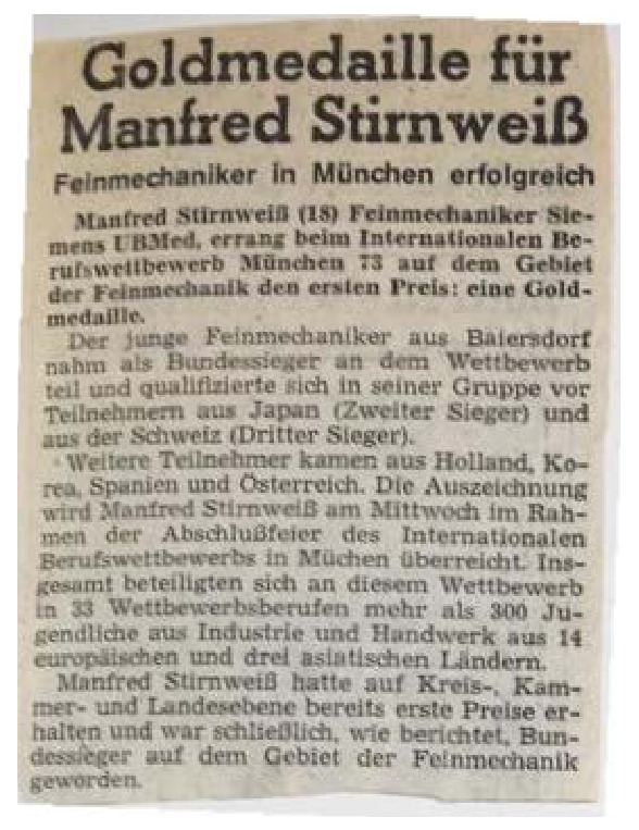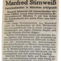- Review on the success of Manfred Stirnweiss at the 21st International Apprentice Compeittion, Munich 1973