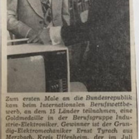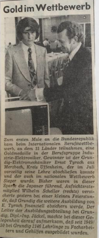- Review on the success of Ernst Tyrach at the 21st International Apprentice Compeittion, Munich 1973
