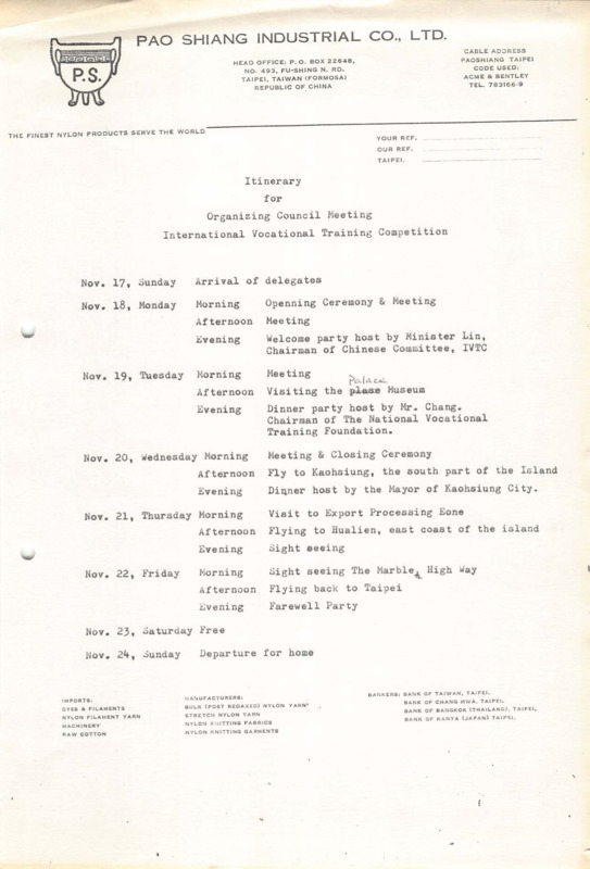 IVTO Organizing Committee meeting in Taipei on 17-24/11/1974. Schedule