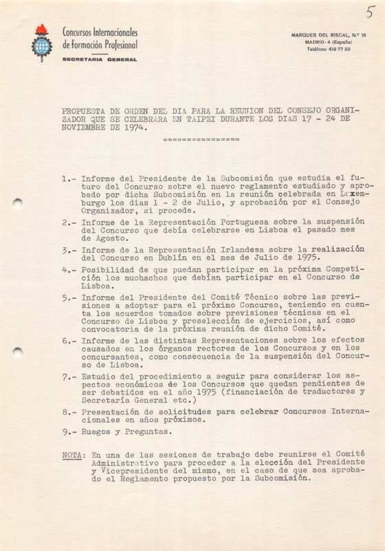 - IVTO Organizing Committee meeting in Taipei on 17-24/11/1974. Agenda