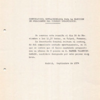 Call for a extraordinary Organizing Committee meeting on 20/11/1974, for the election of IVTO President |