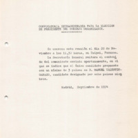 Call for a extraordinary Organizing Committee meeting on 20/11/1974, for the election of IVTO President