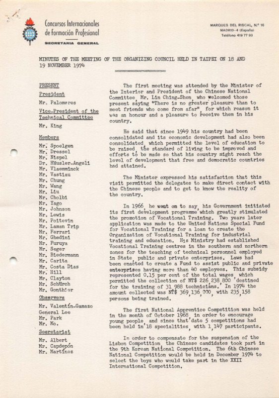 - Organizing Committee meeting minutes, Taipei, 18-19/11/1974