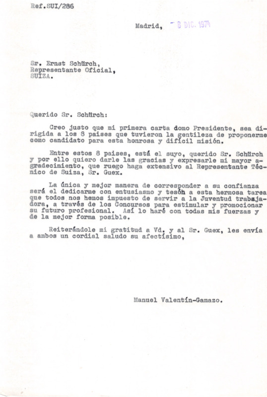 - Letter from Manuel Valentín-Gamazo to Ernst Schürch, 06/12/1974