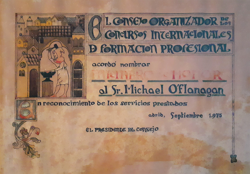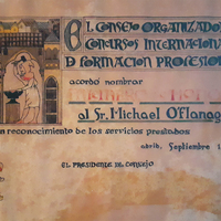 - IVTO Honorary Member Certificate to Michael O Flanagain, September 1975