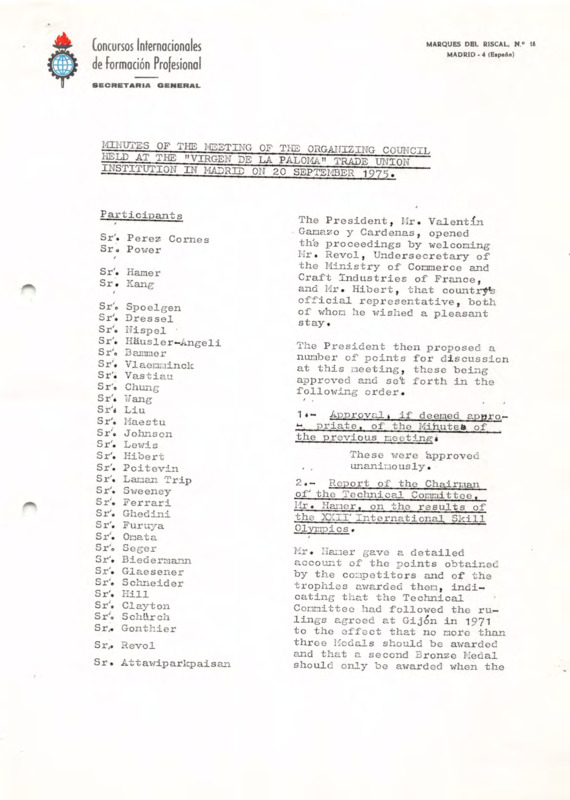 - Organizing Committee meeting minutes, Madrid, 20/09/1975