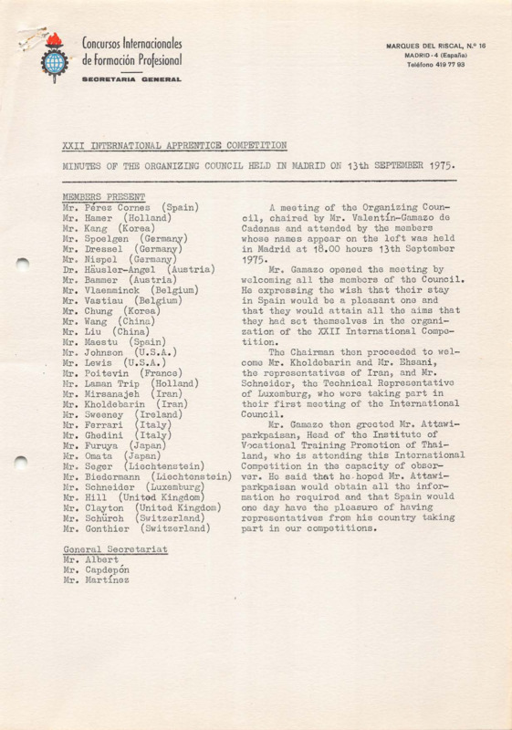 - Organizing Committee meeting minutes, Madrid, 13/09/1975