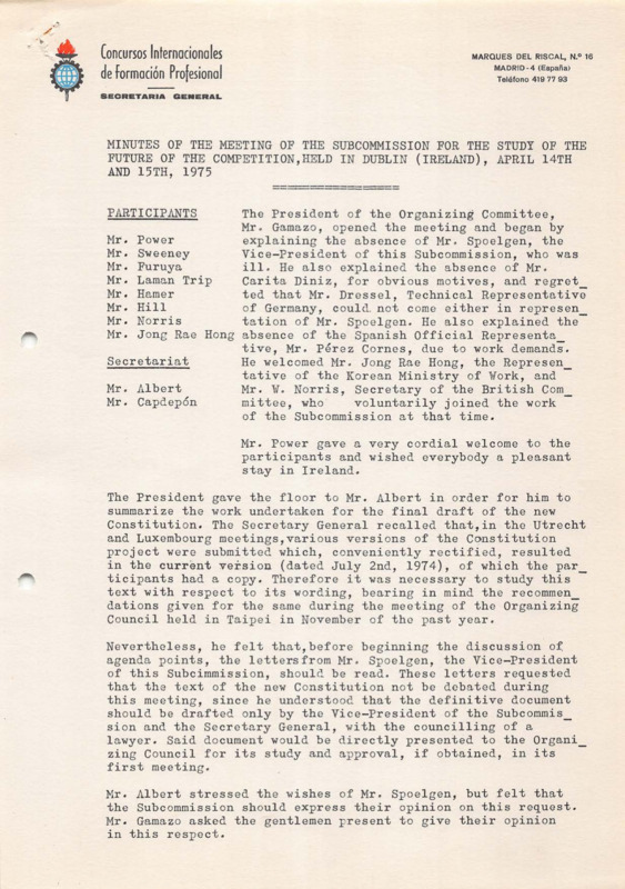 - Sub-committee for the study of the future for the competition, meeting minutes, Dublin 14-15/04/1975