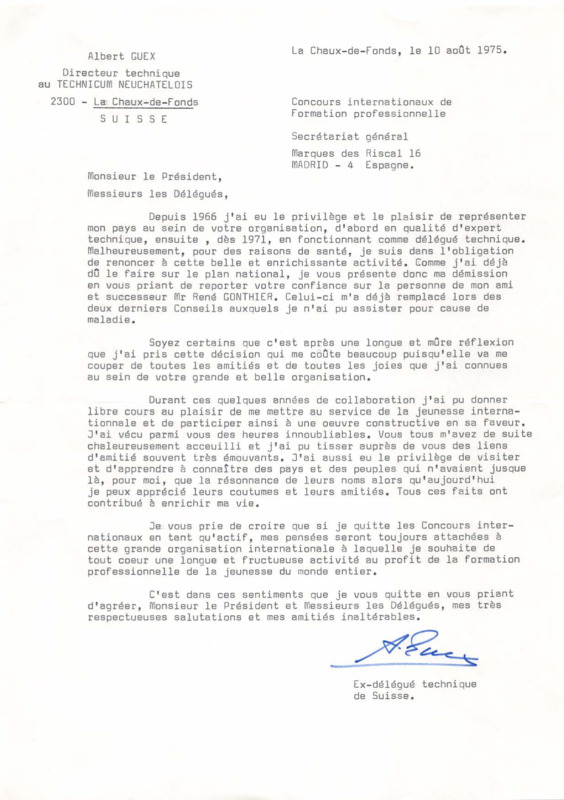 - Letter from Albert Guex to IVTO President and Members, 10/08/1975