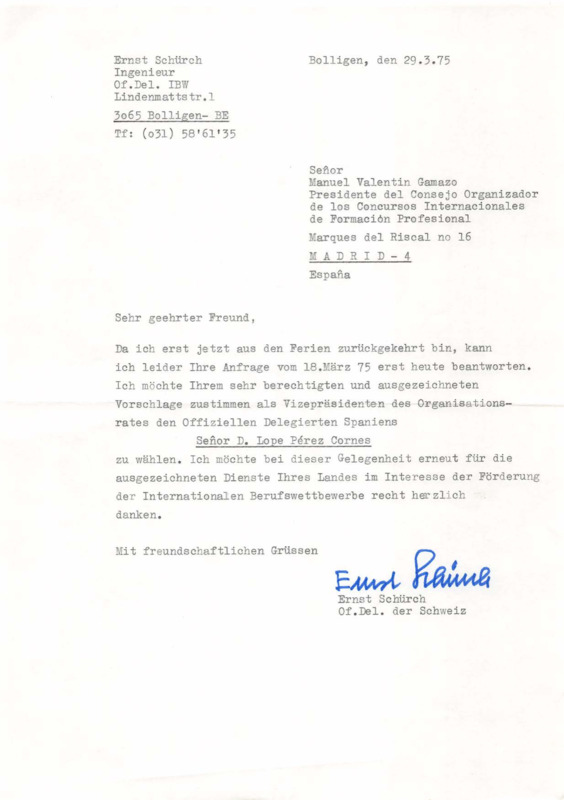 - Letter from Ernst Schürch to Manuel Valentín-Gamazo, 29/03/1975