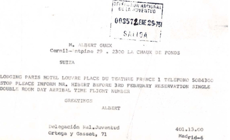 - Telegram from Francisco Albert Vidal to Albert Guex, 29/01/1975