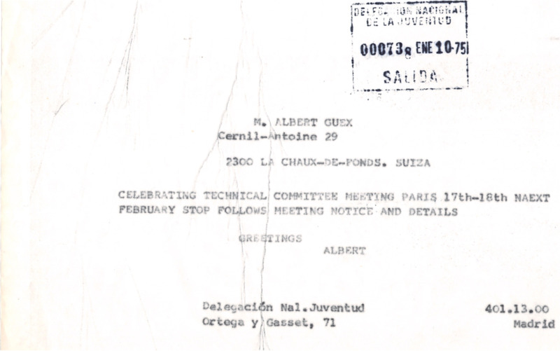 - Telegram from Francisco Albert Vidal to Albert Guex, 29/01/1975