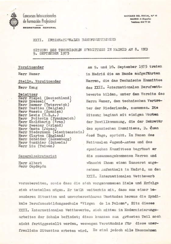 - Technical Committee meeting minutes, Madrid, 8-9/09/1975