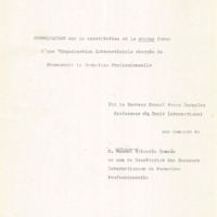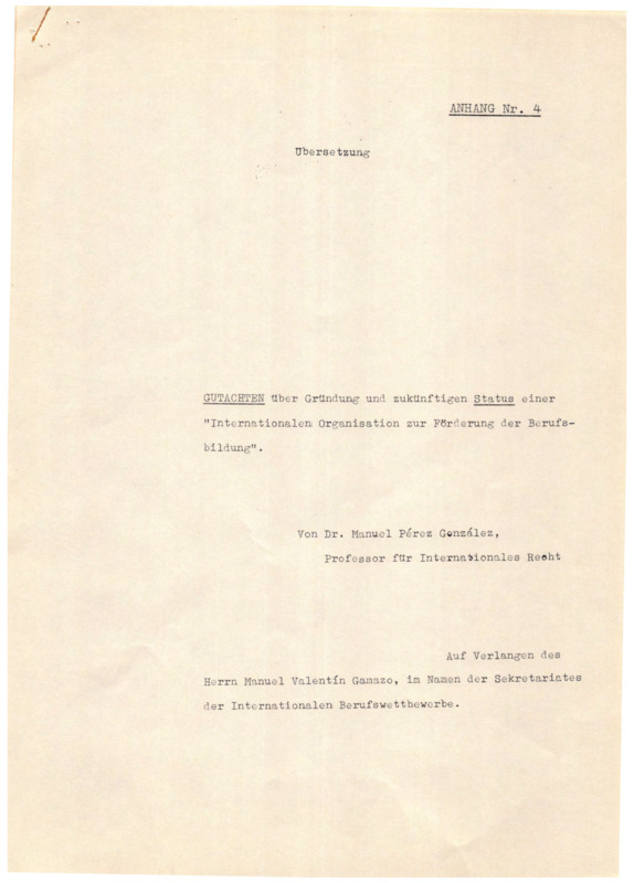 - Legal opinion of Manuel Pérez González, International Law Professor, in response to Manuel Valentín Gamazo's question regarding the constitution and status of a potential international organization for VET promotion and skills competitions