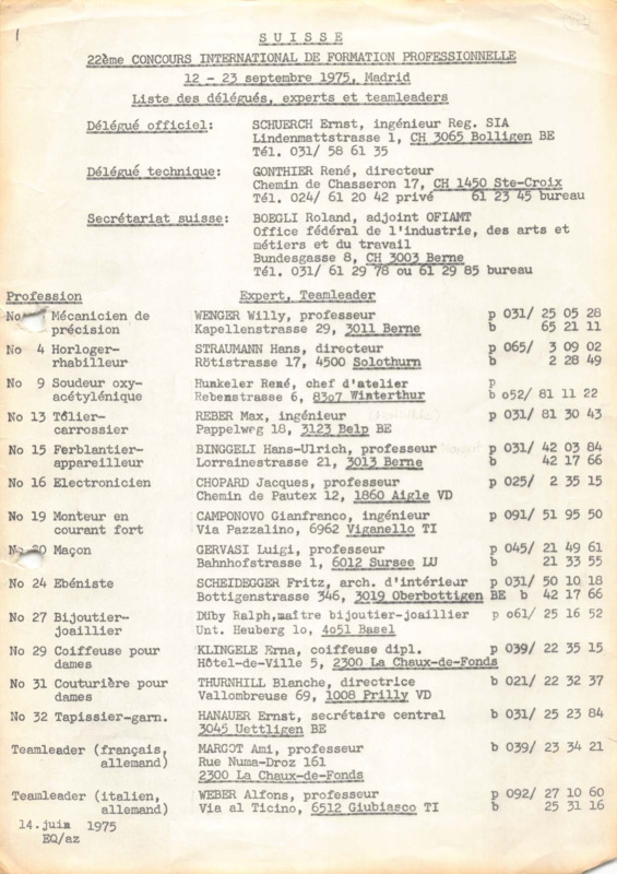- Swiss Delegates, Experts and Team Leaders in the 1975 International Competition