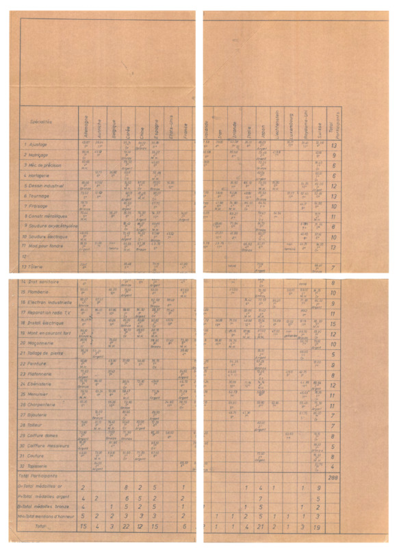 - 22nd International Competition, Madrid 1975. Results sheet, by skill and country