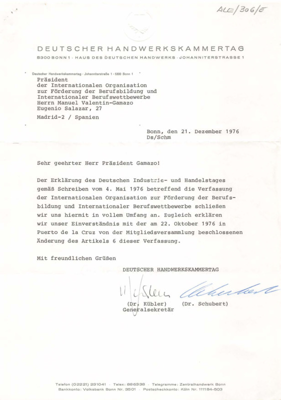 - Letter from Dr. Kübler and Dr. Schubert to Manuel Valentín-Gamazo, 21/12/76