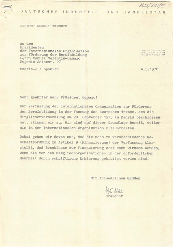 - Letter from Briocher to Manuel Valentín-Gamazo, 04/05/76
