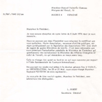 Subject: Endorsements to the IVTO constitution proposal approved in the General Assembly held in Tenerife on 20/091975. This letter is included in the list of the endorsements to the he constitution of the IVTO, but the final decision is subject to different French Ministeries, according to the text.(French and translation into Spanish) - Date