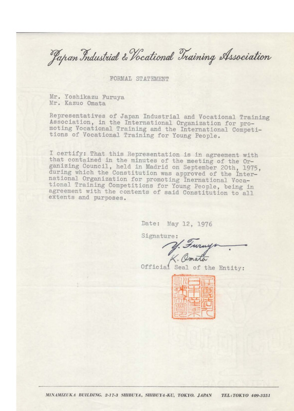 Subject: Endorsements to the IVTO constitution proposal approved in the General Assembly held in Tenerife on 20/091975 - Date