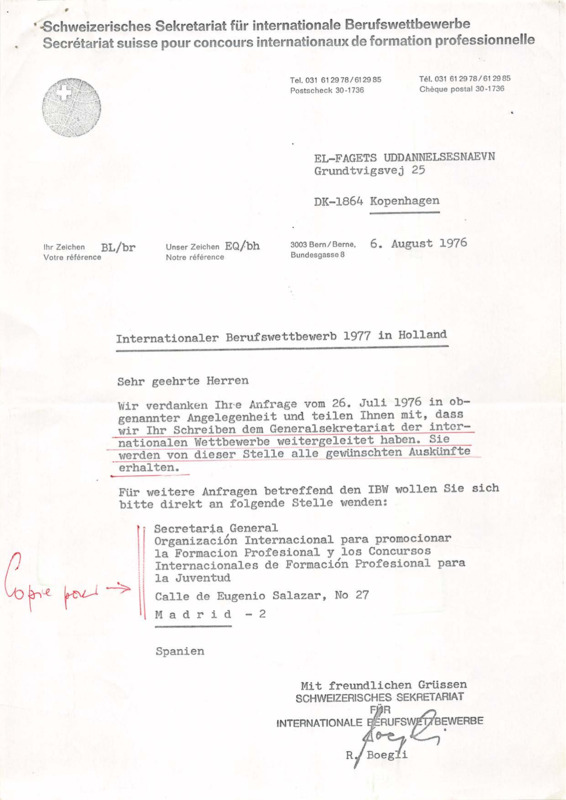 - Letter from Roland Boegli to the El-Fagets Uddannelsesnaevn, 06/08/1976