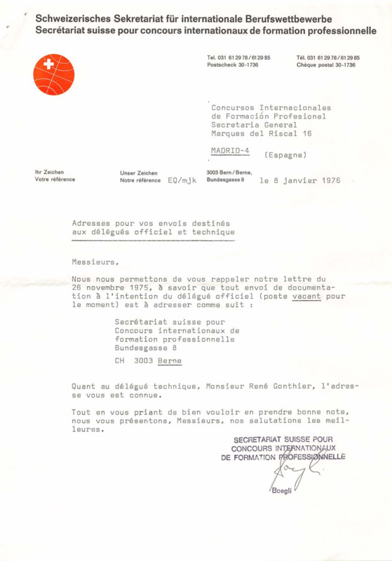 - Letter from Roland Boegli to the General Secretariat, 08/01/1976