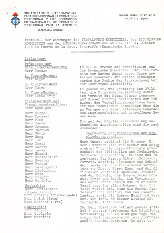 - Administrative Committee meeting minutes, Tenerife, 21-24/10/1976
