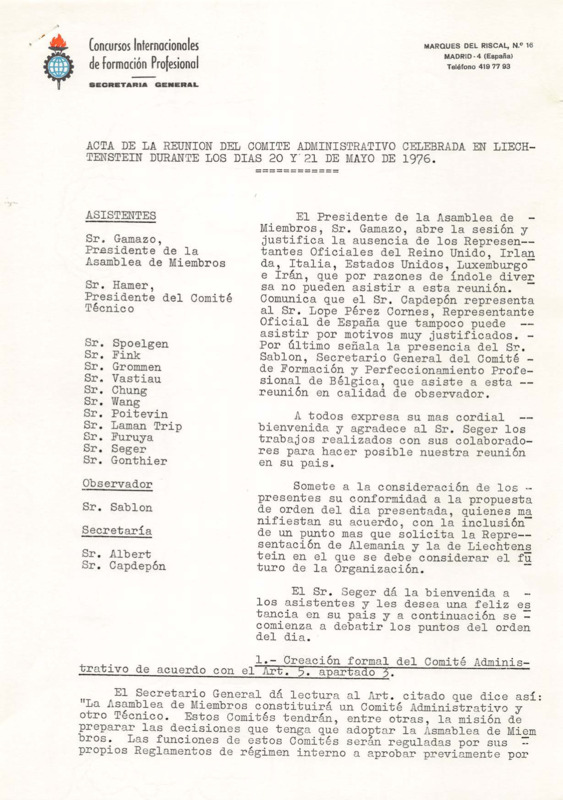 - Administrative Committee meeting minutes, Liechtenstein, 20-21/05/1976