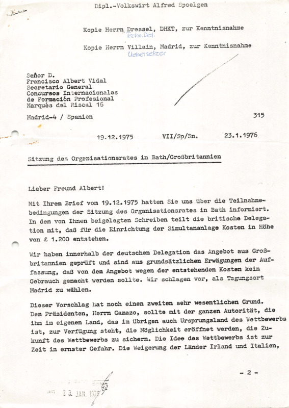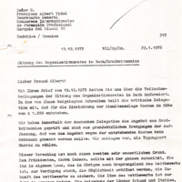 Letter from Grüßen to Francisco Albert Vidal, 23/01/1976 Subject: Organizing Committee in Bath
