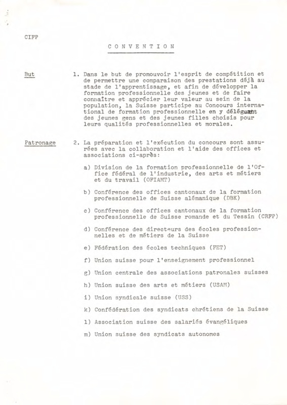 - Swiss Committee for International VET Competitions , Statute agreement - 13/09/1976