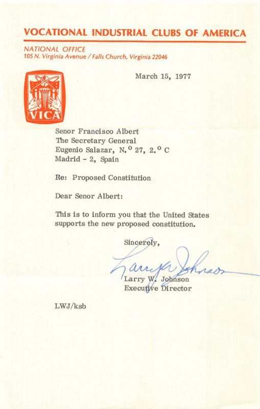 - Letter from Larry W. Johnson to Francisco Albert Vidal, 15/03/77