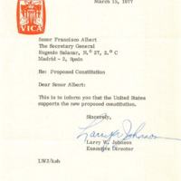 Letter from Larry W. Johnson to Francisco Albert Vidal, 15/03/77