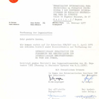 Subject: Endorsements to the IVTO constitution proposal approved in the General Assembly held in Tenerife on 20/091975 - Original in German and translation into Spanish - Date