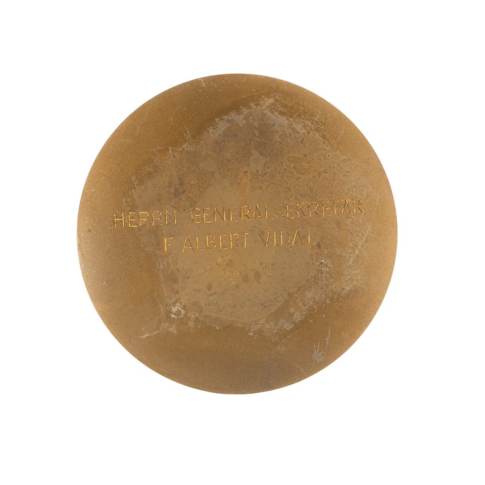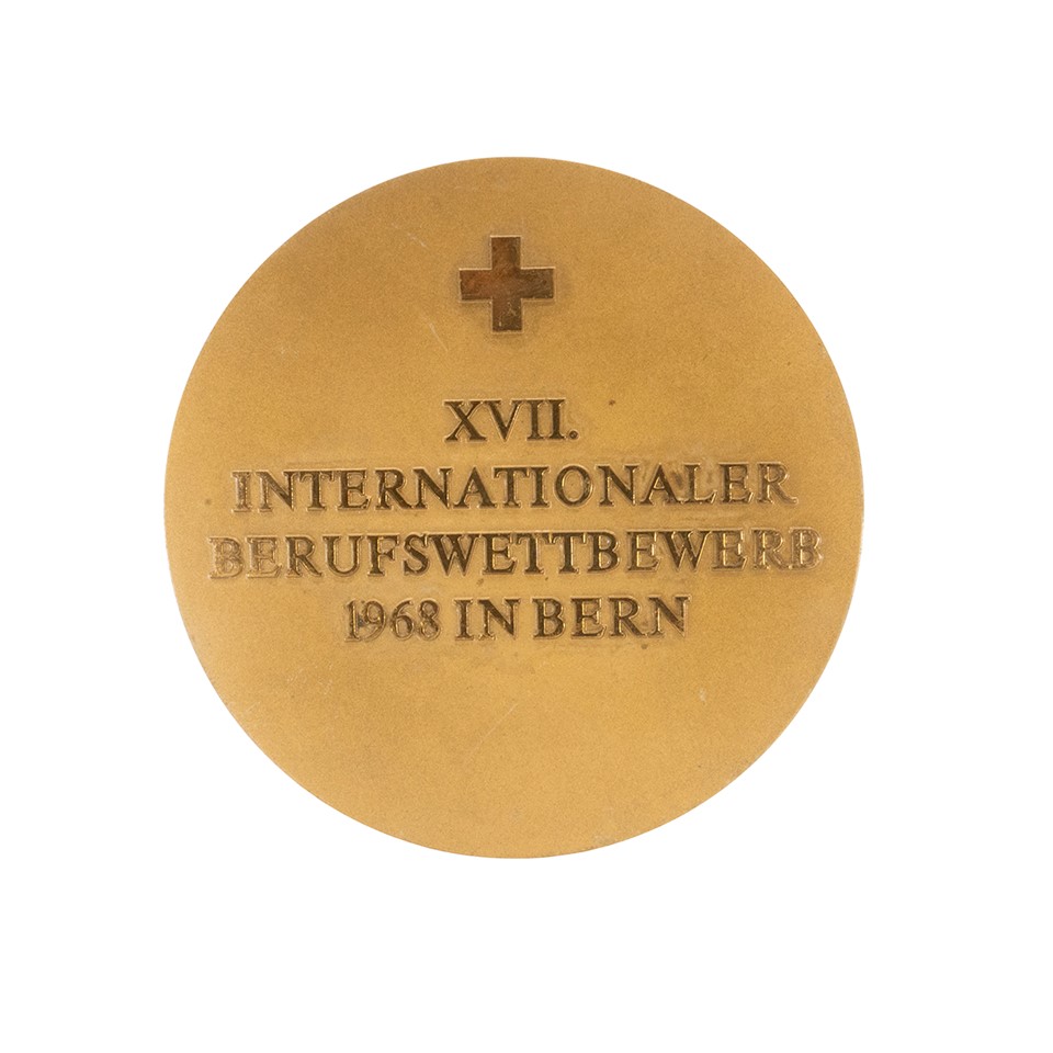 - A commemorative medal given to Francisco Albert Vidal in 1968 to honour his work as the IVTO Secretary-General, a position he held following the organization’s establishment in 1956 until 1983. The medal, featuring the Swiss cross, was made for the international skills competition held in Bern, Switzerland in 1968.